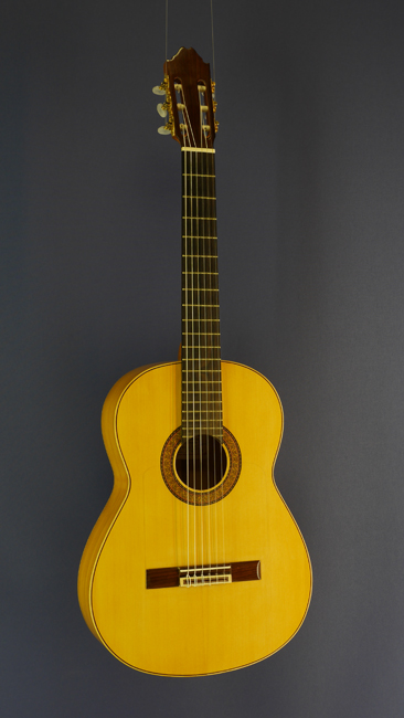 Meistergitarre, Konzertgitarre gebaut 1991 in Spanien mit Fichtendecke und Zargen und Boden aus Palisander, Mensur 65 cm